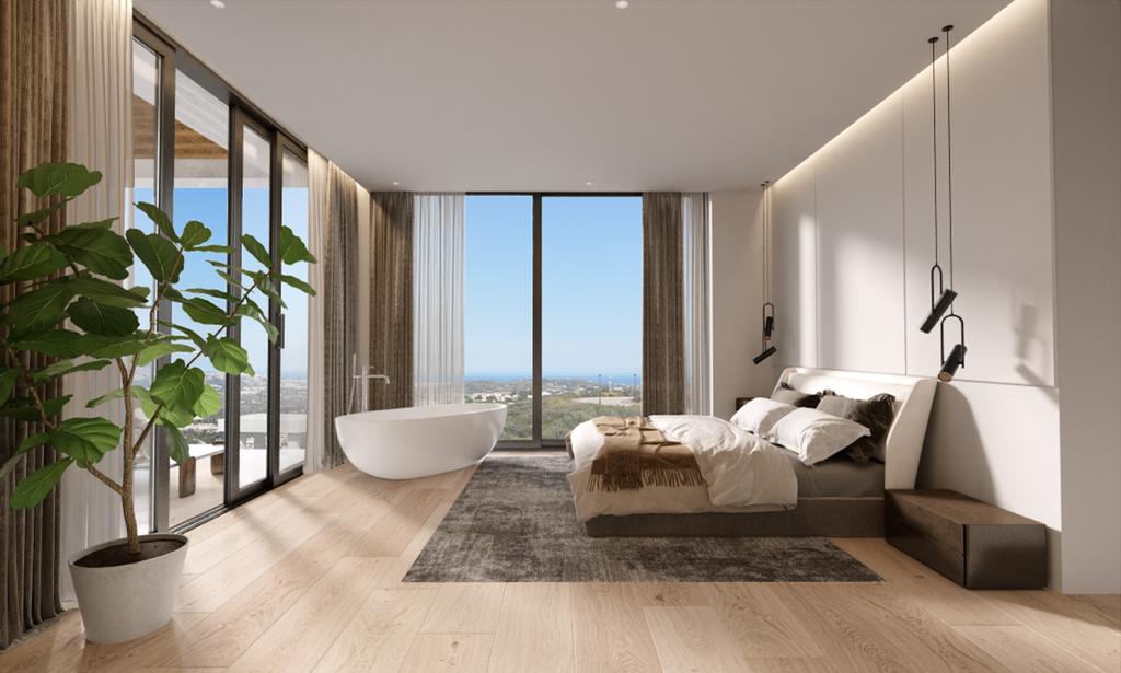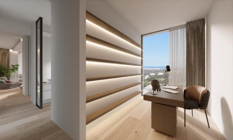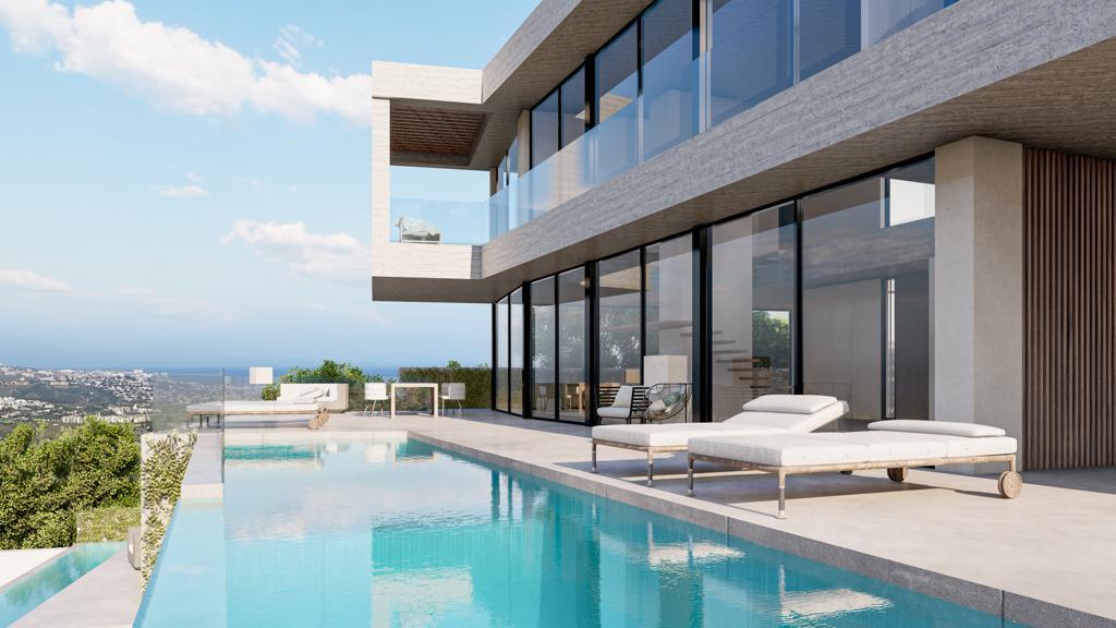 Esta villa: 5 habitaciones, 5 baños, 2 aseos, cine, gimnasio, 2 piscinas, zonas verdes, calificación energética A , sostenible, placas solares, cristales de control solar, suelo radiante, chimeneas bioetanol, vistas al mar, cerca del club de golf, orientación sur-este, plaza de garaje, solárium , vestidores.